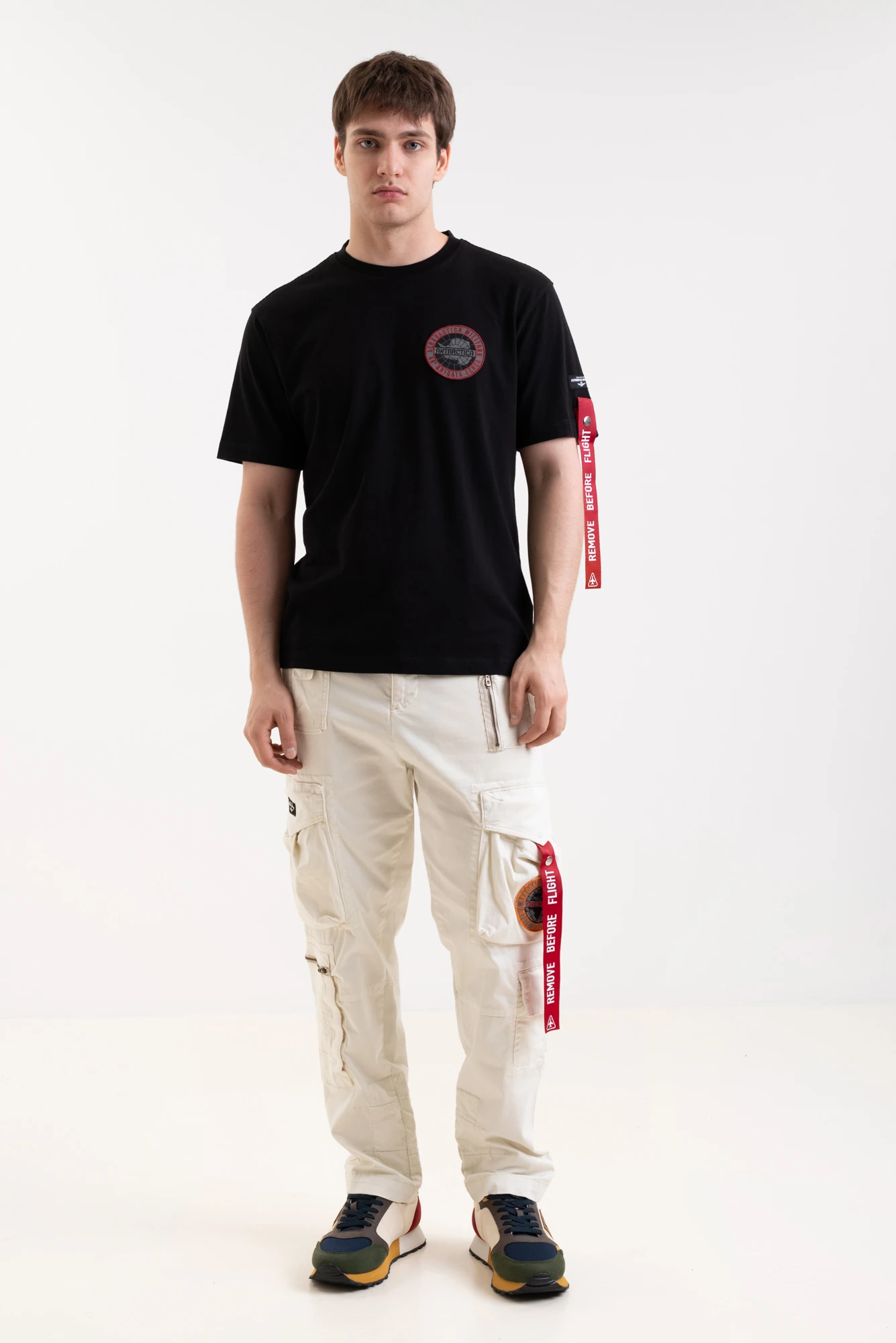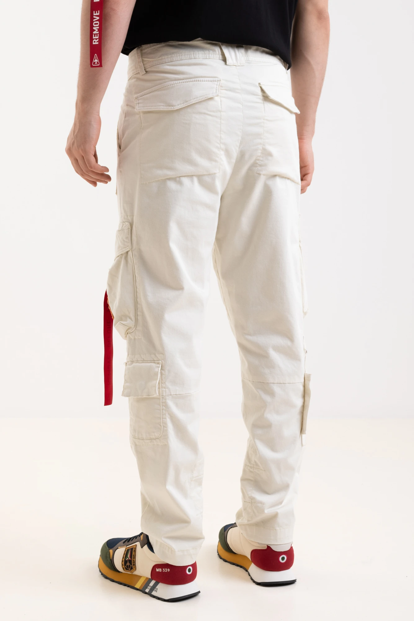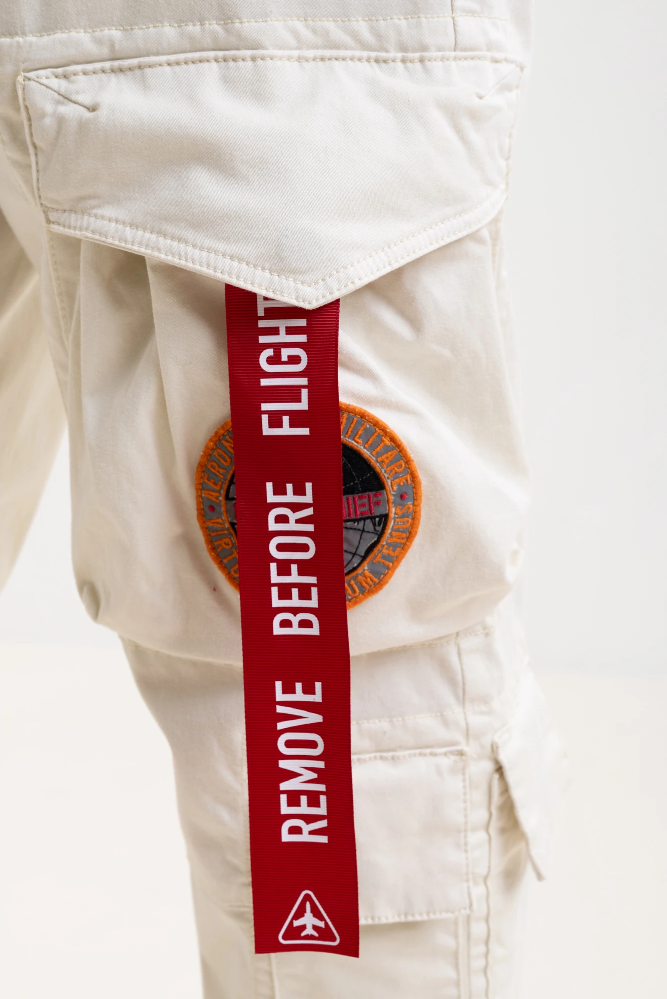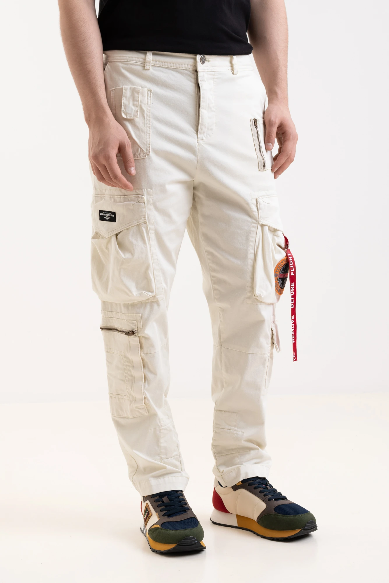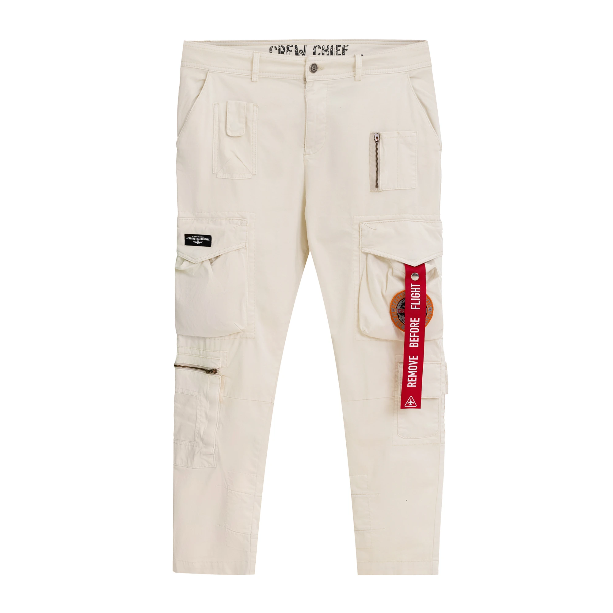 Брюки карго муж. AERONAUTICA 1582 молочный красная лента на кармане