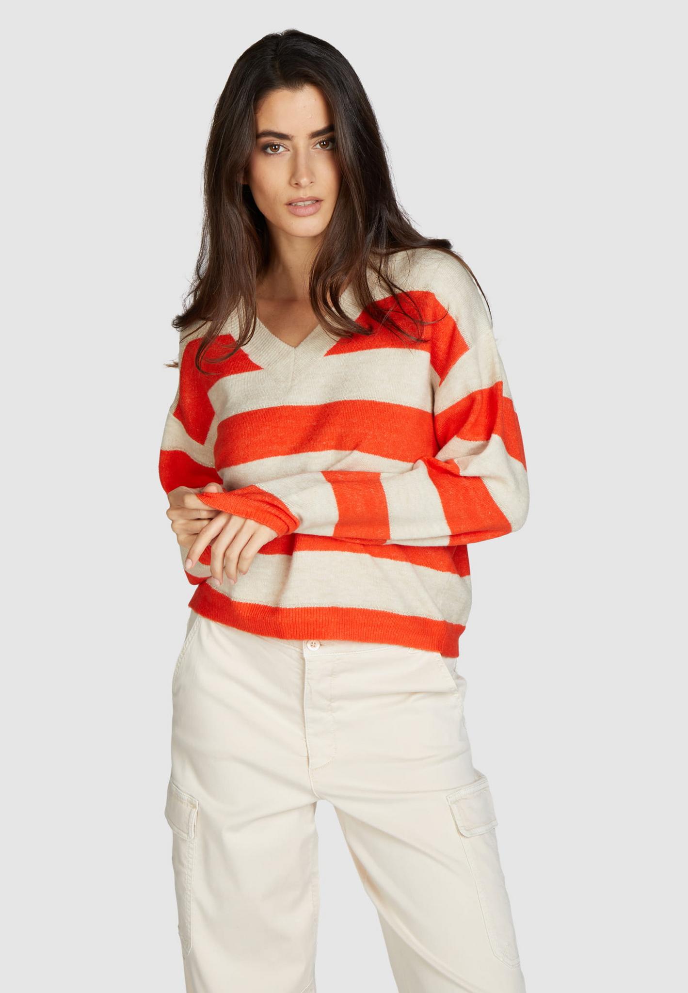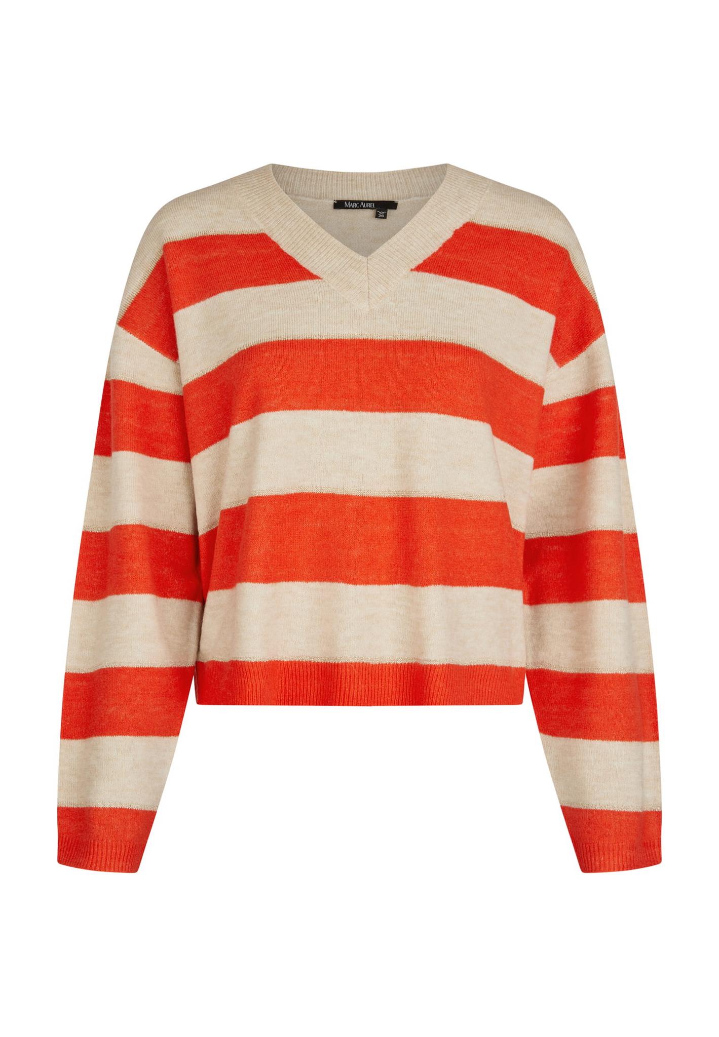 Джемпер вырез V Marc Aurel 81992 оранжевый с бежевым полоса