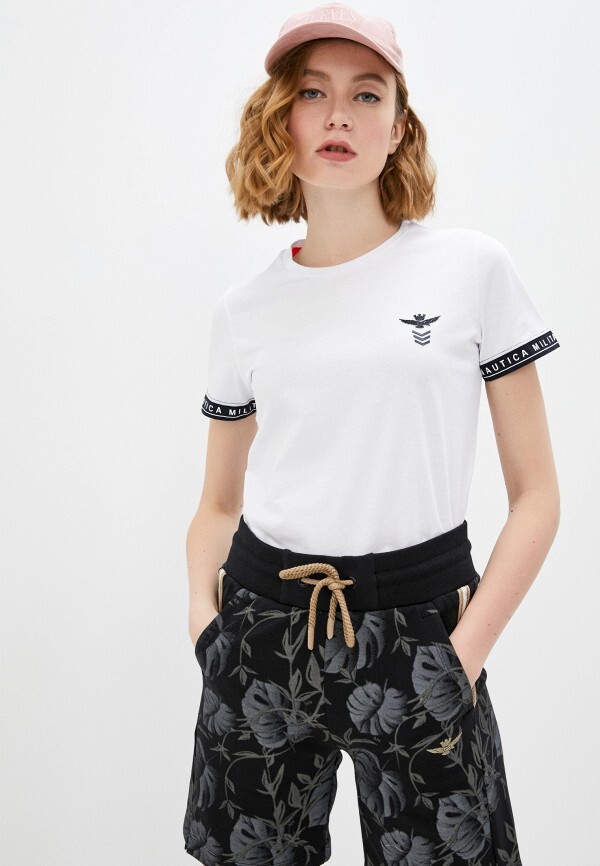 Футболка жен. AERONAUTICA 1873 белый рукав кант черным