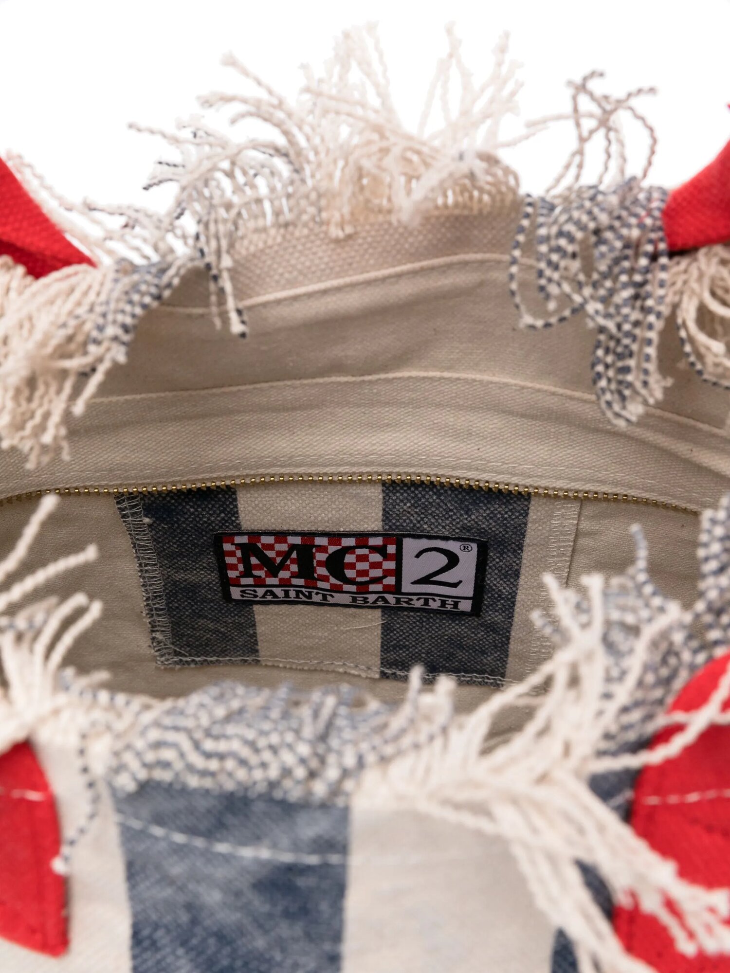 Пляжная сумка Saint Barth Vanity Tina бело-синяя, лого красным