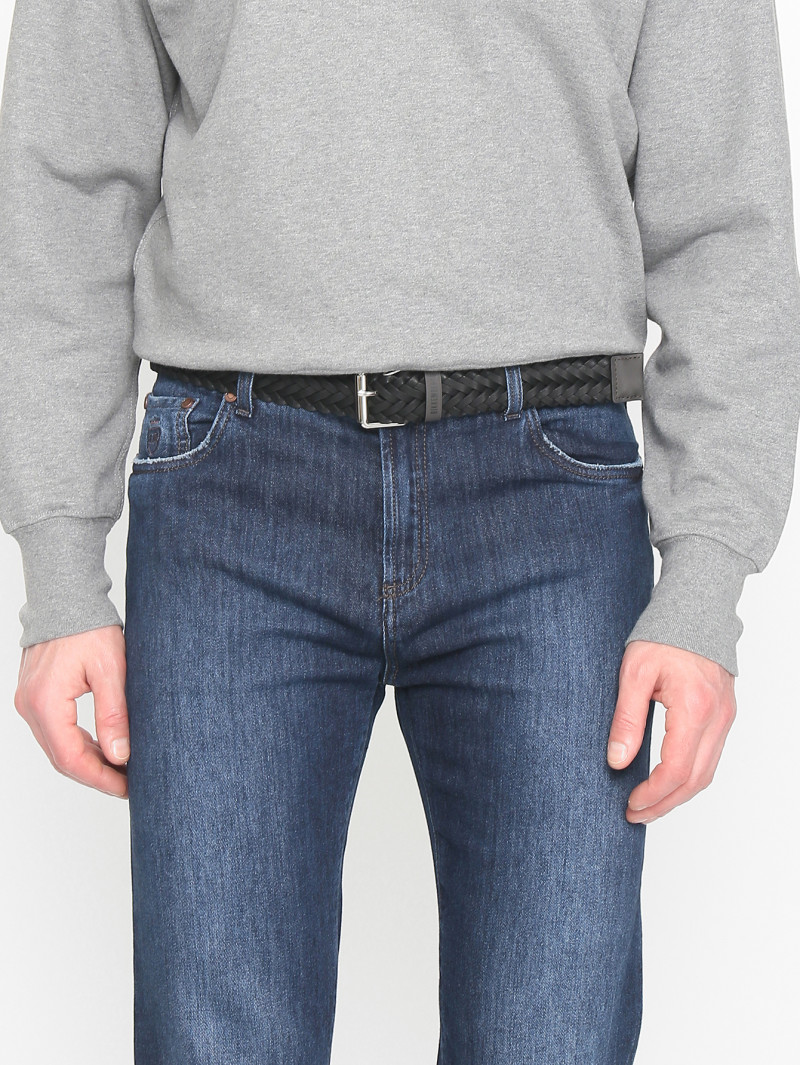 Ремень BIKKEMBERGS 110 черный/коричневый косы